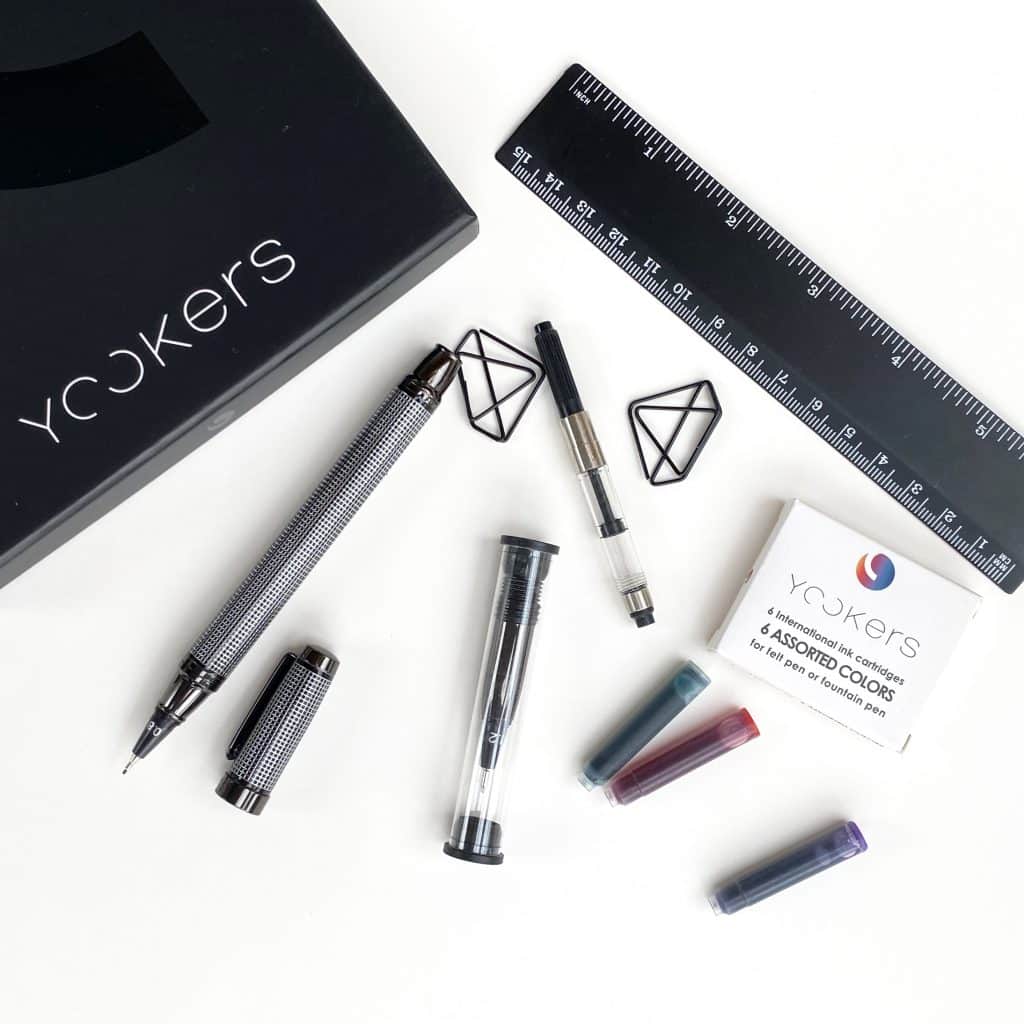 Avec ses 5 pointes feutre et roller interchangeables, son système de recharge avec des cartouches d’encre standard universel ou un convertisseur et une bouteille d’encre, le stylo YOOKERS signe le retour du plaisir d’écrire à la main.