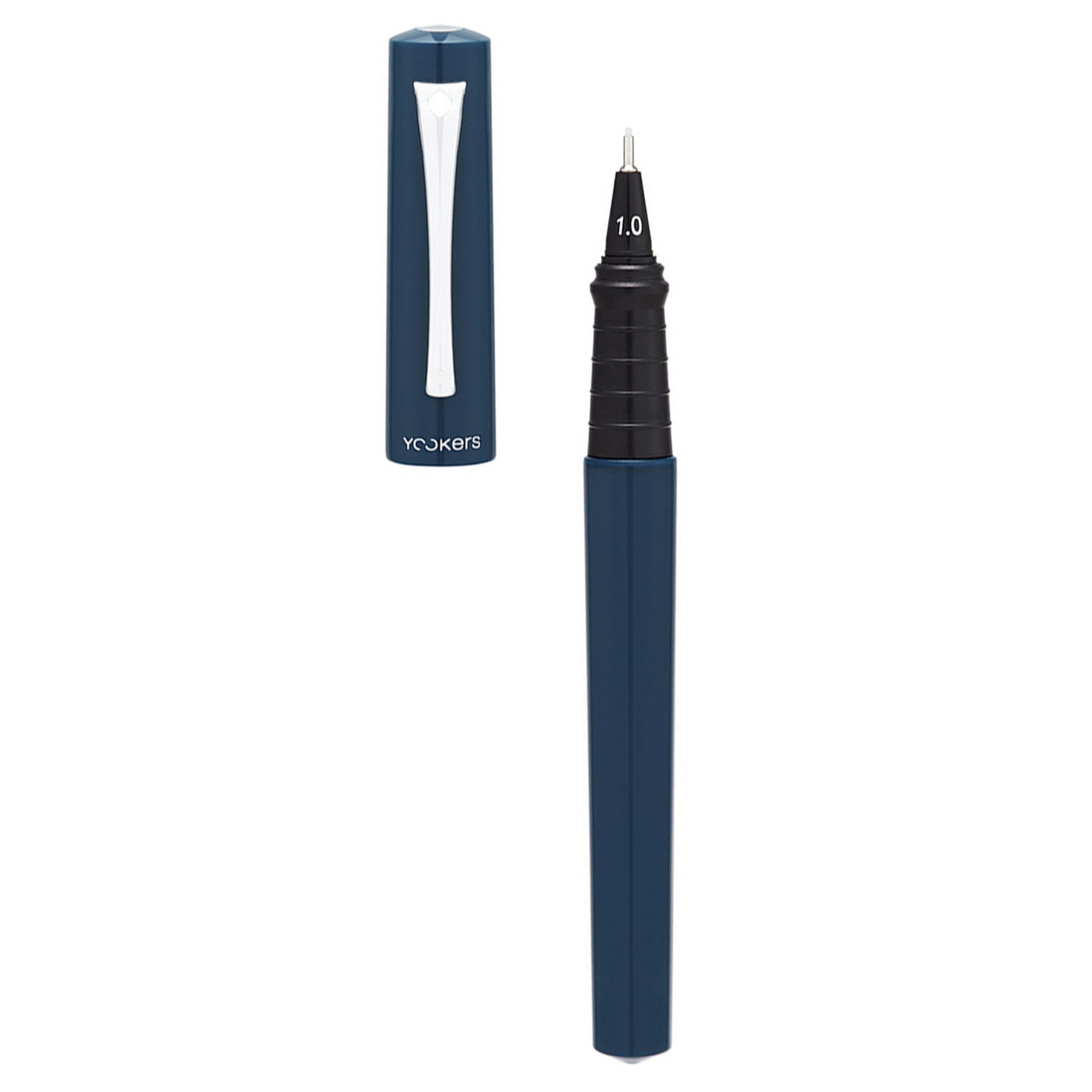 5 refillable felt tip pens with shiny chrome metal clip and plastic ergonomic section. delivered in bulk.